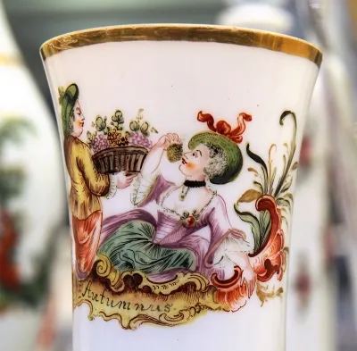 しかし、デザインモチーフとしては神話など古典的なものや鹿や風景など伝統的なデザインが多く、18世紀半ば以降は次第にフランスの先鋭的なデザインに後れを取るようになってしまう。